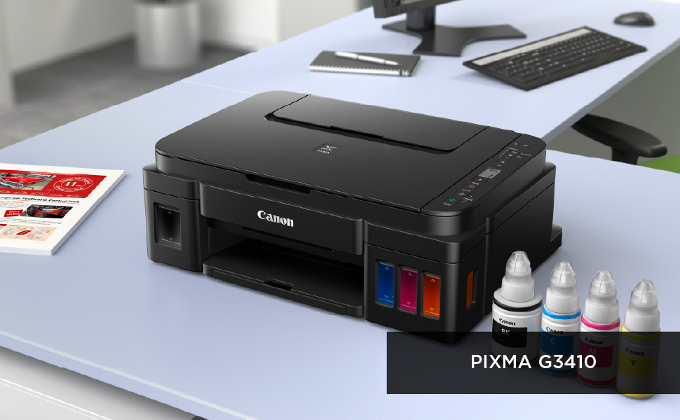 Experience highly cost effective and productive printing with high yields* of up to 6000 pages from a black ink bottle or up to 7000 pages using a set of colour bottles.